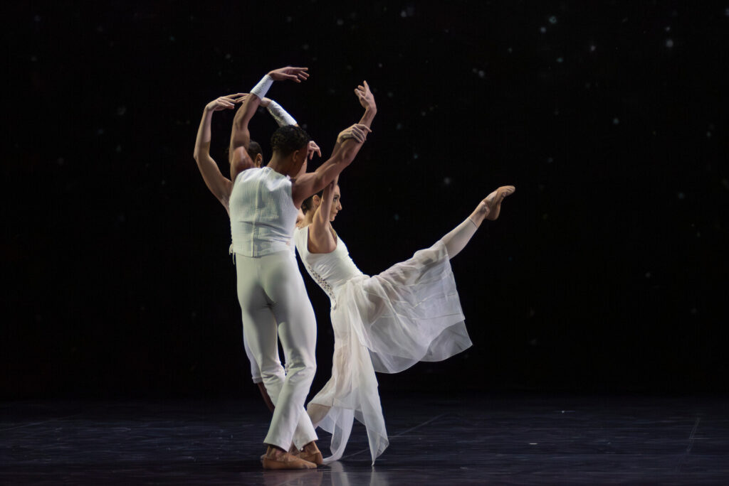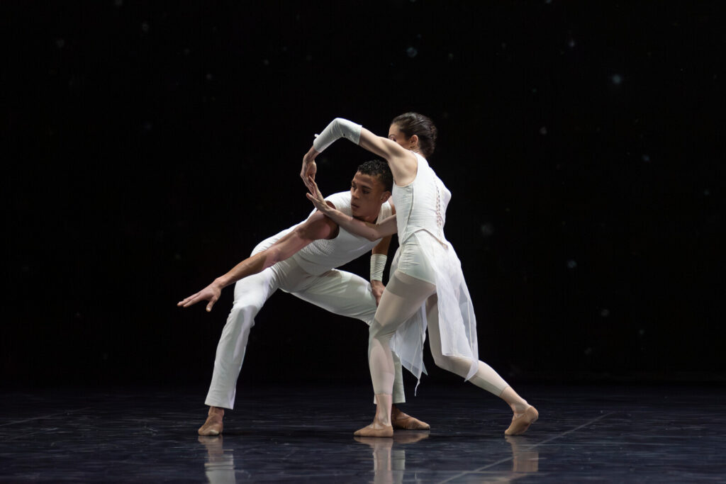 Derrière ses qualités abstraites et les lignes géométriques et symétriques qui caractérisent la chorégraphie, surtout grâce à des arabesques récurrentes et des portés structurés, les danseurs restent libres d’imprégner leurs mouvements avec différentes qualités de mouvement. Et pour cela, Bleuenn Battistoni, Valentine Colasante Marc Moreau, Paul Marque, Germain Louvet, Andrea Sarri Hohyun Kang, Bianca Scudamore, Clara Mousseigne, Elizabeth Partington, ne manquent pas au rendez-vous, en faisant émerger leurs qualités artistiques.