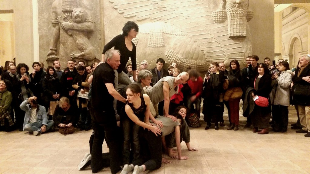 Le 18 Mars, le Louvre a accueilli Dancing Museums et Tatiana Julien a présenté Prière de ne pas détruire. L’important musée français a aussi participé à ce projet dans le cadre de ses célébrations de l’anniversaire de Jérôme Bosch. On a rencontré des difficultés pour choisir quelle partie du Louvre pouvait accueillir les performances vu l’affluence des visiteurs et la configuration du musée. A la fin, on a opté pour les salles des Antiquités Orientales, un choix riche de significations. Elles gardent la mémoire de notre civilisation qui s’est développée autour de la Mésopotamie et témoignent des traces de l’humanité. De plus, préférer ces salles a eu aussi un sens politique vu la situation actuelle de guerre présente dans le Moyen Orient.