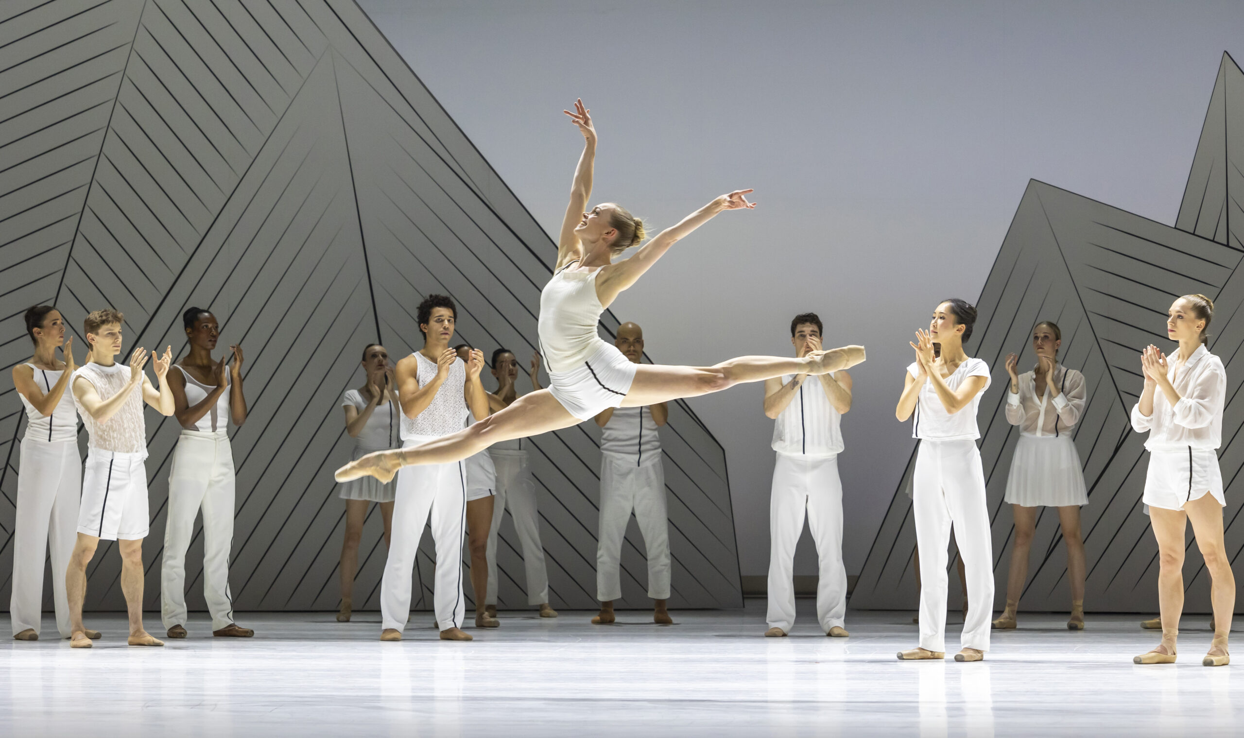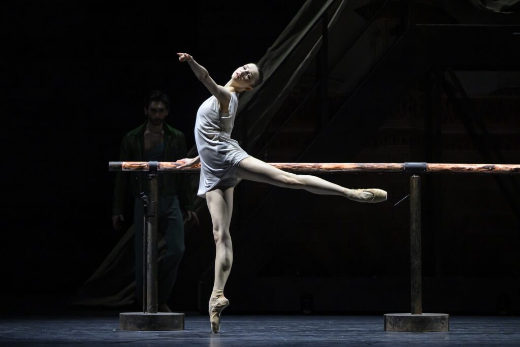 Et cet outil qui accompagne tous les danseurs pendant leur carrière, utilisé en guise de métaphore, restera central pendant tout le premier acte, devenant l’instrument avec lequel Niki dialogue, se confie et devient le trait d’union dans un pas de deux émouvant entre le Prince Solo et son aimée. Le développement de l’argument dans le premier acte est centré sur l’entraînement et la rivalité entre Niki et Gamza, les deux danseuses principales.