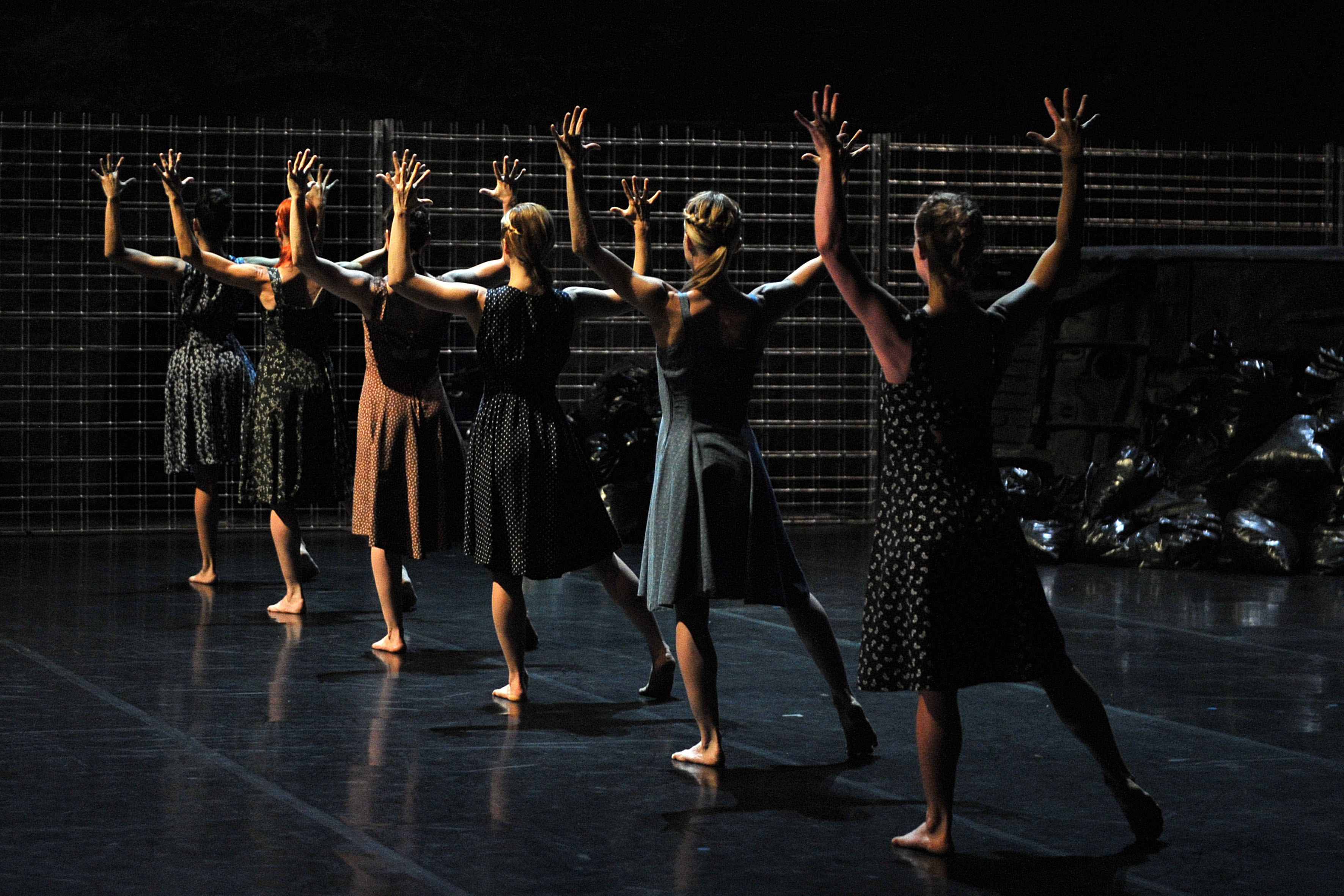 Et il s’agit vraiment d’une tragédie. Le jeune homme ne retrouve plus sa Katja, et pour défendre son identité, il se réfugie dans l’enfance dont il n’a rien oublié. « Il marche et il lui semble que son enfance, c’était un temps moins déraisonnable que maintenant. Mais c’est tellement lointain que le moindre souvenir lui semble fragile et doux comme une grâce dont il ne serait pas digne…Est-ce qu’il a oublié combien on avait faim du temps de son enfance ? Qu’est-ce qu’il essayé d’enjoliver ? Il a oublié pourquoi on part d’ici ?…Non, il se souvient. Il se souvient de tout » sont les mots crus et réels qui accompagnent ce retour à Berratham. Les parties dansées ne sont pas nombreuses, une vrai limite pour cette pièce surtout parce que leur qualité chorégraphique est très bonne. On y reconnait le style limpide et précis de Preljocaj, surtout dans certains ports de bras. Les danseurs, remarquables, constituent un vrai trait d’union entre chaque partie littéraire récitée et ils représentent, à travers leurs mouvements, les sentiments de détresse, de mort et d’une complète incapacité à lutter contre les atrocités de la guerre. Angelin Preljocaj pourra réfléchir pour enrichir les parties chorégraphiques de cette dernière pièce, ses trente ans de danse le méritent.