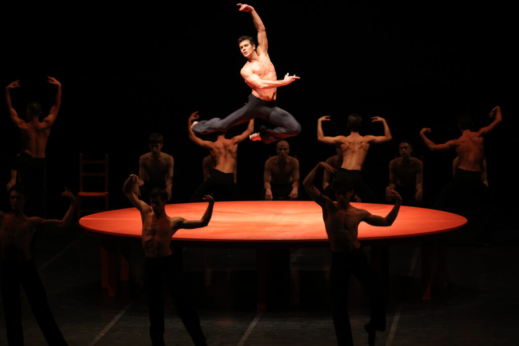 Mais le Boléro de Béjart n’incarne pas seulement un rituel érotique, il exprime aussi l’essence profonde de la partition musicale. La répétition en crescendo progressif est certes la note la plus évidente, mais il existe aussi d’autres éléments plus subtils. Par exemple, l’alternance régulière (comme les maillons d’une même chaîne) de deux couples de motifs, dont la seconde est une variante légèrement éloignée de la tonalité principale de do majeur, ou bien une opposition entre ces motifs et le rythme obstiné qui repose également sur une opposition : celle entre le rythme ternaire de la musique et le rythme binaire de la chorégraphie. L’étoile Roberto Bolle a interprété le ballet en dansant sur la mythique table rouge. Son interprétation et son appropriation du rôle ont été un crescendo continu jusqu’à l’explosion finale qui clôt le célèbre morceau musical de Ravel.